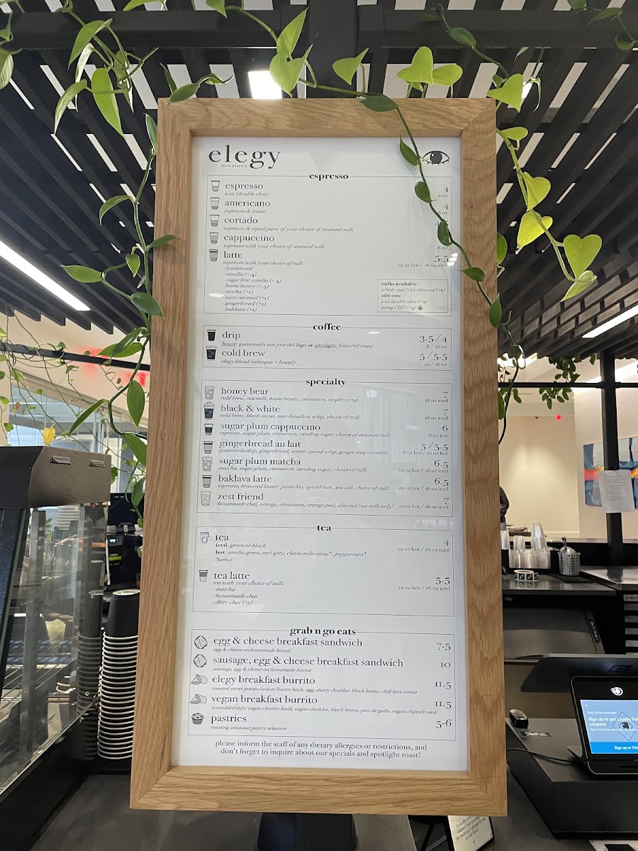 Welcome to Elegy Coffee Downtown, a vibrant cafe nestled in the heart of Nashville. This spot is renowned for its modern ambiance and friendly, quick-service staff. You'll find an array of delightful options that cater to various dietary needs, including gluten-free goodies like the popular Morsel donut paired perfectly with a chai latte.